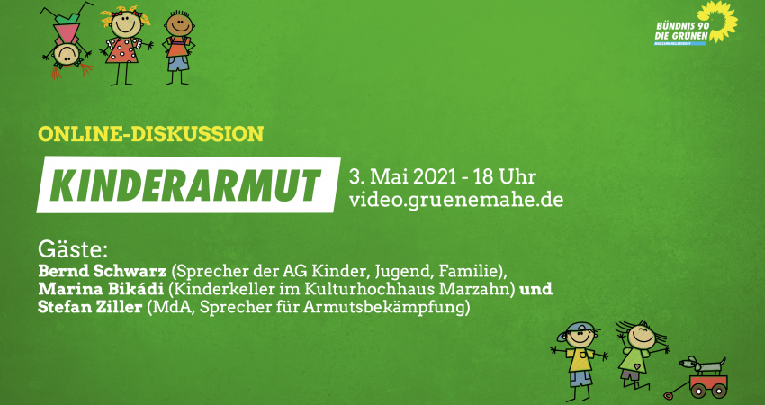 Gemeinsam mit Bernd Schwarz (Sprecher der AG Kinder, Jugend, Familie), Marina Bikádi (Kinderkeller im Kulturhochhaus Marzahn) und Stefan Ziller (MdA, Sprecher für Armutsbekämpfung) wollen wir mit Ihnen über die notwendigen Maßnahmen ins Gespräch kommen.Wann: 3. Mai 2021 – 18 Uhr